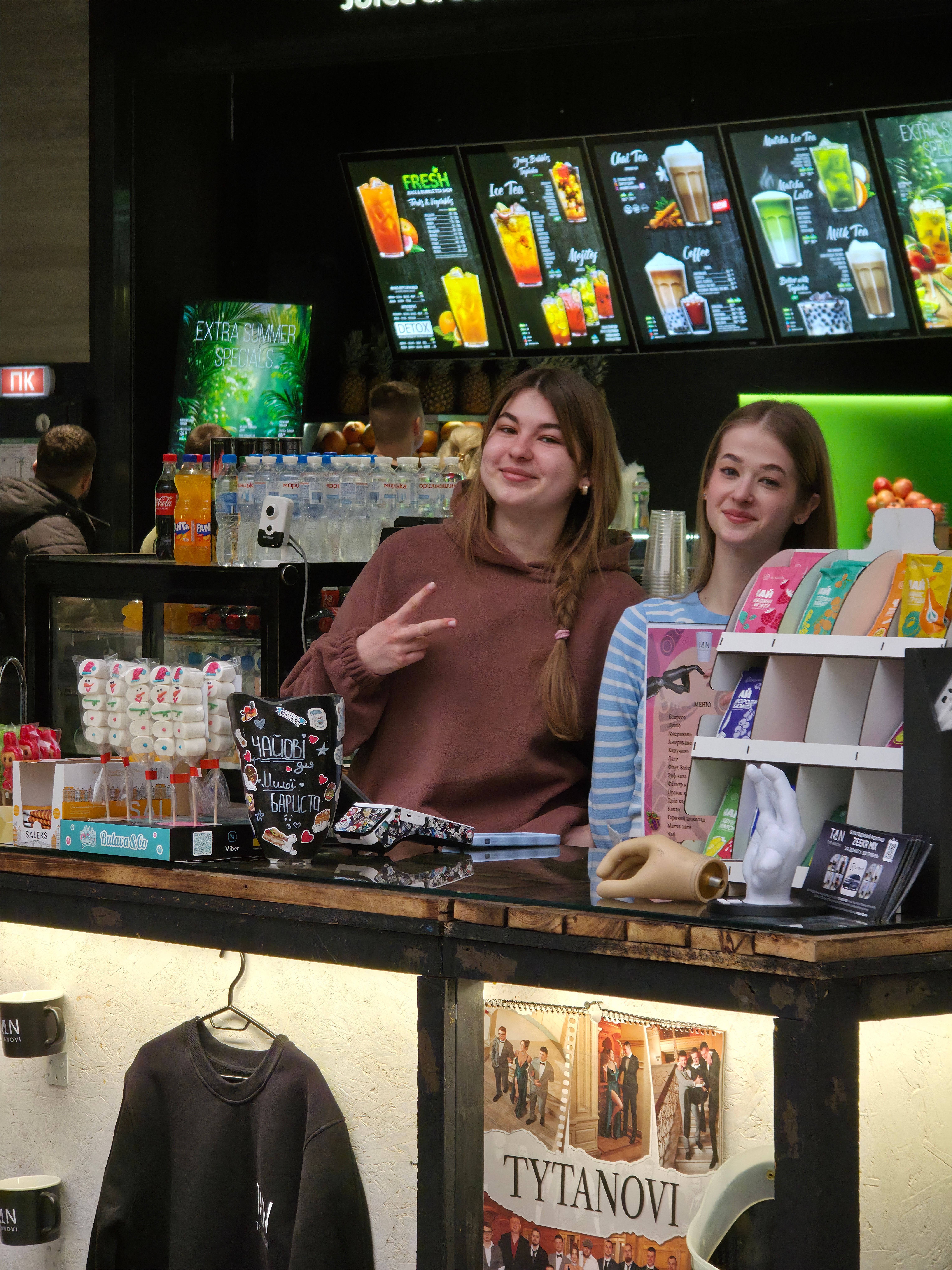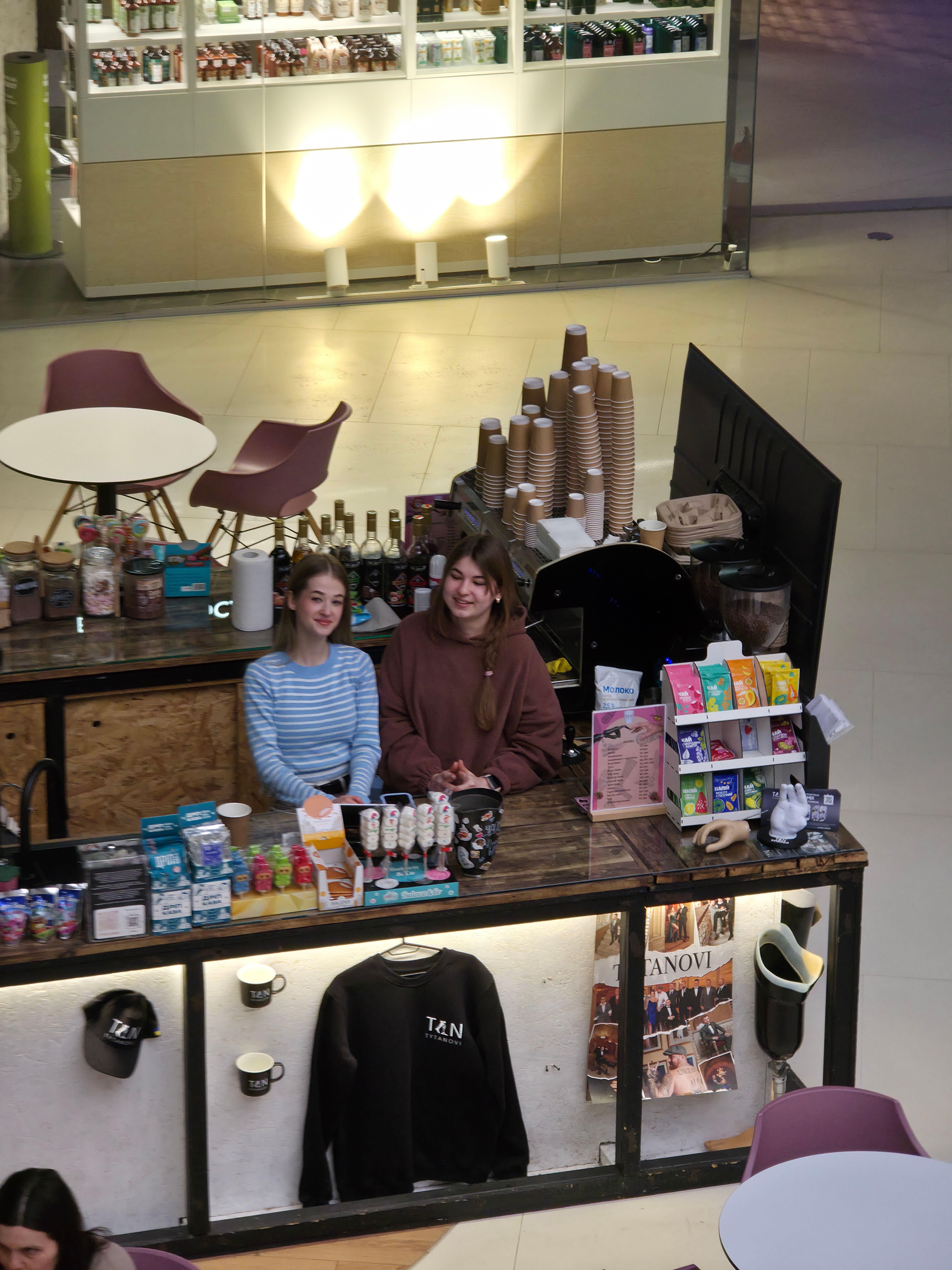 Окрім смачної кави та смаколиків, у кав’ярні можна придбати мерч протезно-реабілітаційного центру TYTANOVI. Усі кошти з продажу мерчу спрямовуються на підтримку ветеранів з важкими ампутаціями.